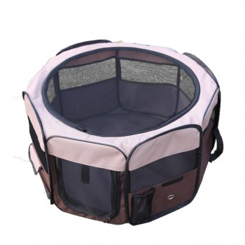 The bottom can be take off. With one outer carrier bag, a mesh fabric cover on the top. Eight sides design, three sides firm steel wire and three sides soft steel wire.Two side opening, with one pocket and a drinking buckle.